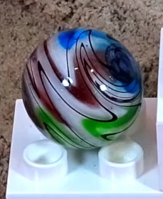 Blizzard Blaster is a swirly green, blue, white and maroon marble who competes in the Marble Rally. They have competed since 2017, and is currently in the A League. They are originally from Winterpeg.[1]