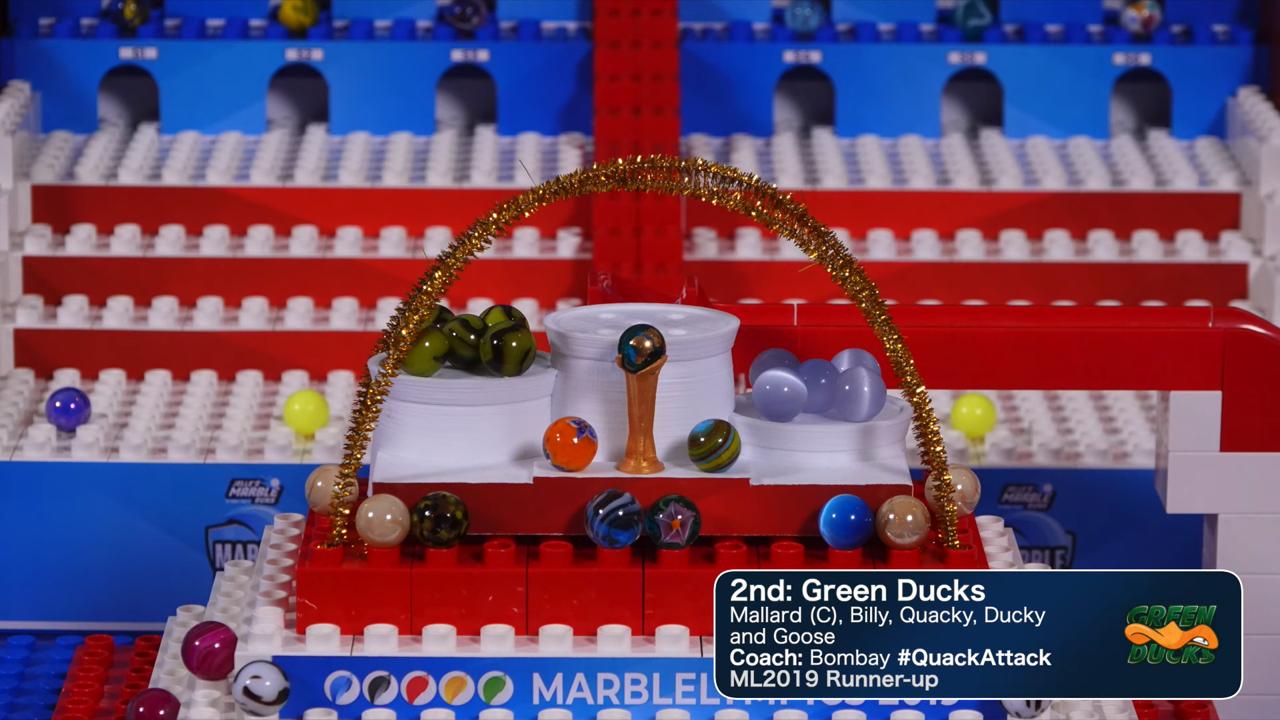 The Green Ducks remained in first, but would not medal again. They lost the lead in the standings to the Raspberry Racers after coming 12th in Event 14, Surfing. The team ultimately finished in 2nd, behind the Raspberry Racers, with 204 points and five medals. The Green Ducks automatically qualified for Marble League 2020 and became the most successful rookie team in the Marble League. Their fanbase only continued to grow afterwards.
