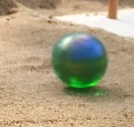 Glassy is a dark green, transparent marble who competed in the Sand Marble Rally. They participated in Sand Marble Rally 2016 and 2017, after which they retired. The reason for their retirement was possibly because they looked a lot like fellow Sand Marble Rally competitor Slimer. Throughout their career, Glassy only DNFd twice: in the Extra Race and Race 9 of 2016.