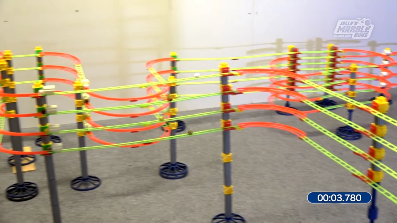 Four teams descend a twisty course with three handovers. One marble from each team rolls down part of the track as quickly as they can. They then crash into the next marble setting them off to complete their part of the race. The fourth marble in the team will complete the final part of the course. The first marble to cross the finish line advances to the final.