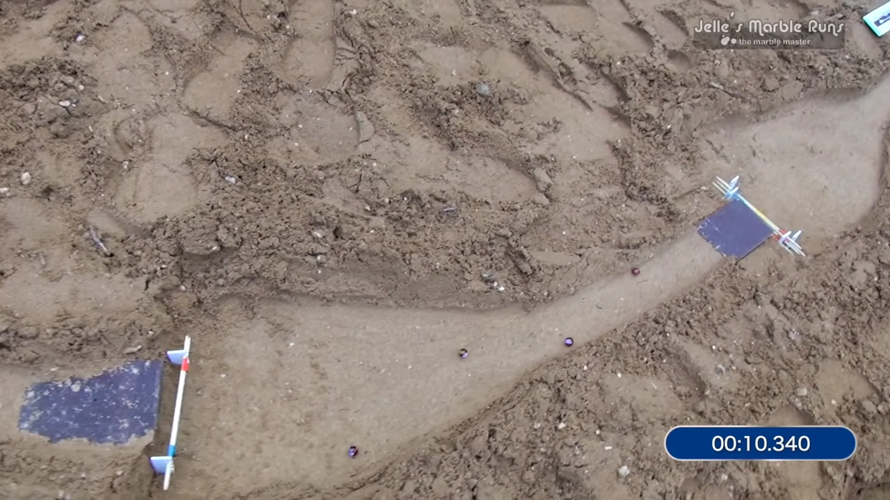 In the Steeplechase, 4 marbles from each team must traverse an outdoor sand track with barriers they must jump over. The objective is to cross the finish line in the fastest possible time, without knocking over any of the mikado sticks on the barriers. Teams receive 1 penalty per stick knocked over/DNF. A team's final result is the sum of their fastest 3 times, plus 1 second per penalty. The team with the lowest result wins.