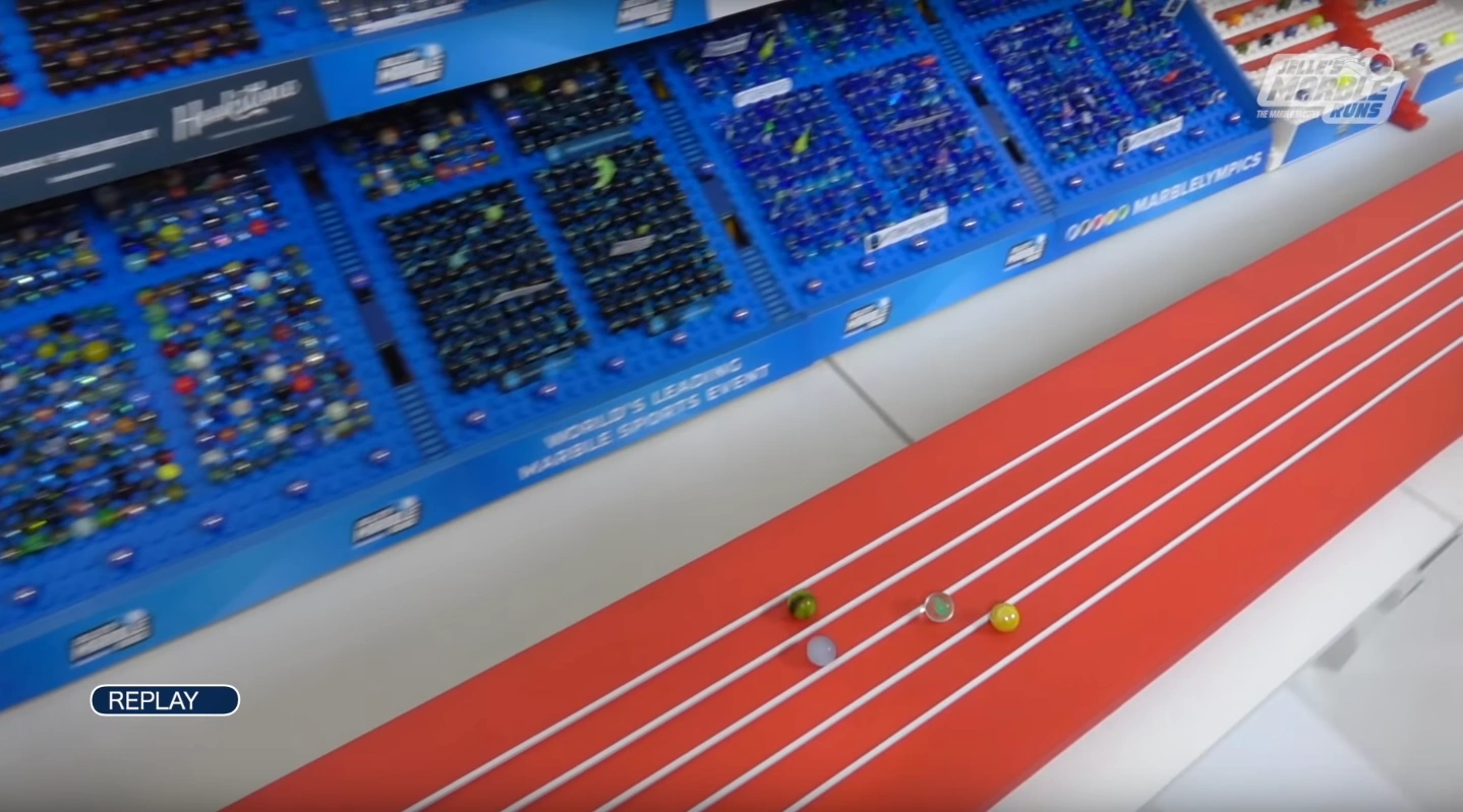 The 5 Meter Sprint returned to the Marble League after not being on the schedule for Marble League 2018. One marble from each team roll down a 5 meter long track as quickly as they can. The first two marbles to cross the finish line advance to the next round.
