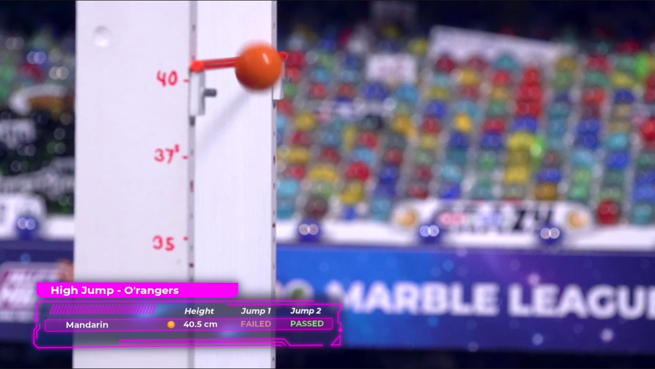The High Jump event returns similar to the High Jump held during Marble League 2016. The height of the bar that the teams must jump over is raised by 5 mm if a marble succeeds to jump over it. However, if they fail to make their way over the bar, their team can try again, but if the marble can't get over the bar again, they are out. The Marble who jumps the highest wins.