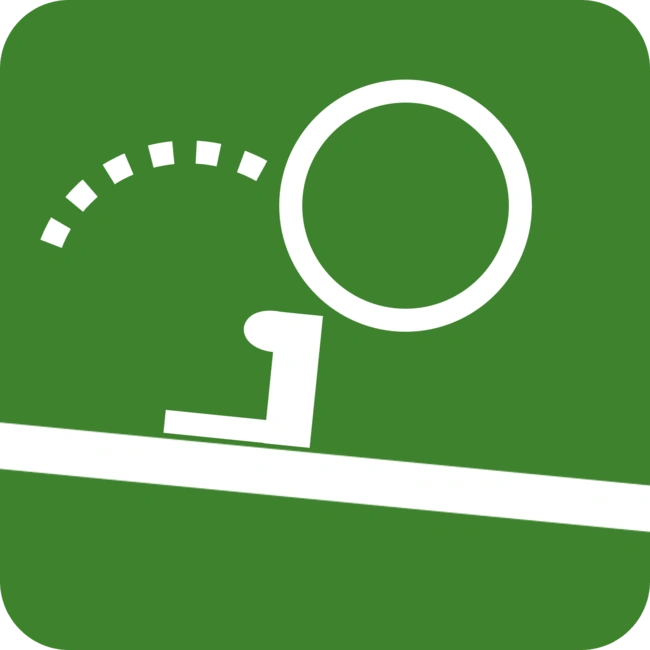 In Climbing, the athlete pairs compete to roll as far as possible after colliding. Similar to Newton's Cradle (albeit teammates make contact with each other directly), the first marble (striker) of the teams accelerates from the starting ramp and sends an impulse into the second marble (skipper) to launch them as far up the slope they can. Distance is calculated by taking the measurement at the center of the skipper at the apex of its movement. Each team is given 2 runs in separate lanes, and their score is the greater of their 2 runs. The team with the highest score wins. Ties are broken by secondary distance.