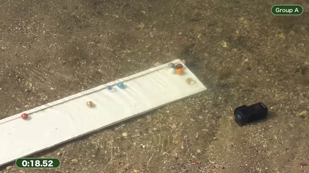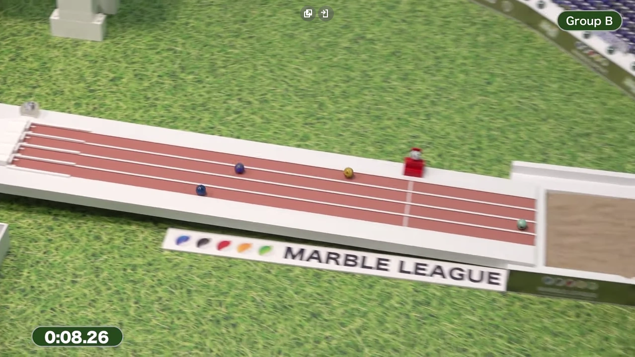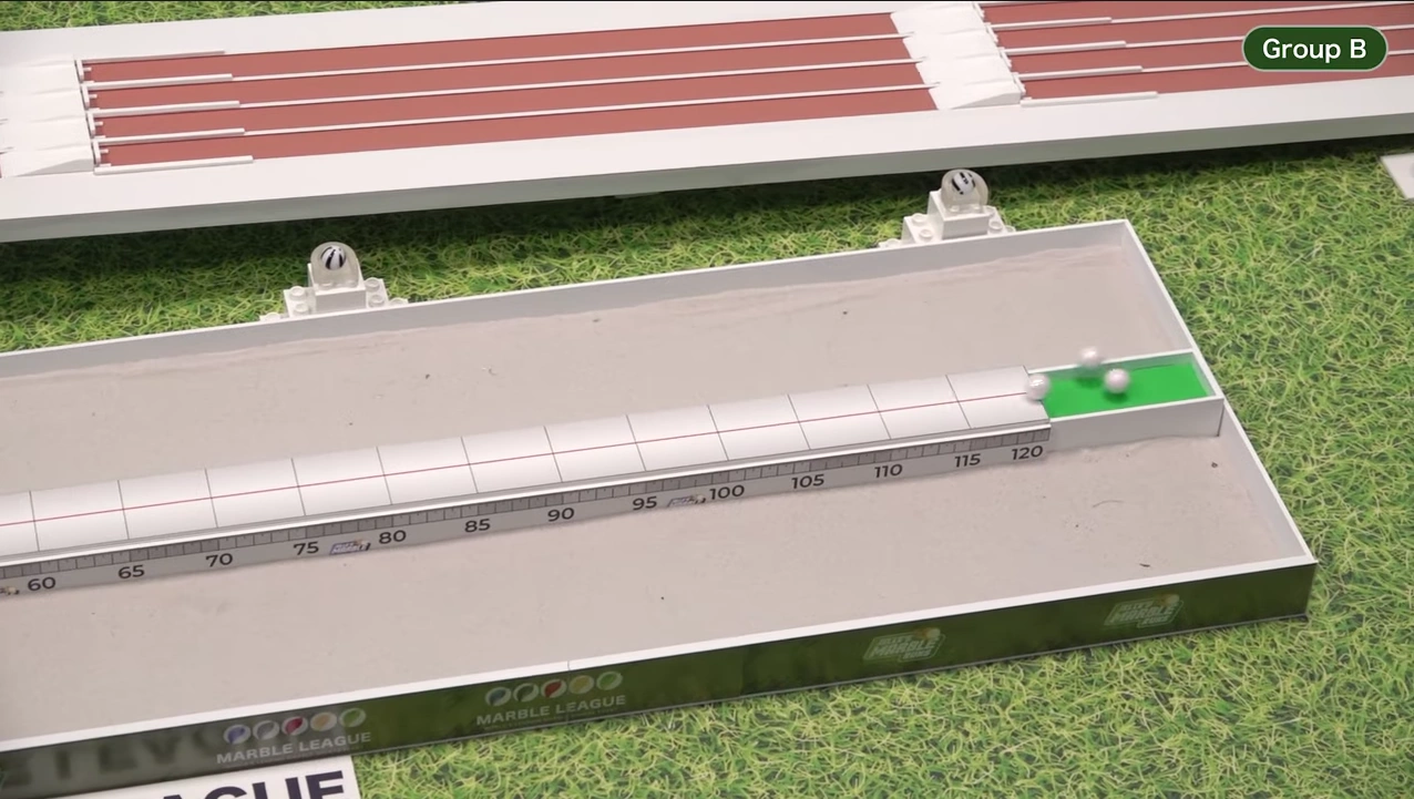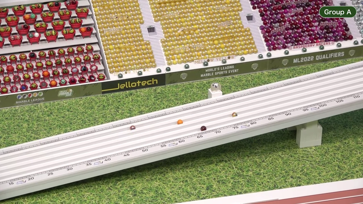 The two teams of each heat were sent down into a green MaBoRun funnel, as previously used in the Funnel Endurance events in Marble League 2020 and Marble League 2021. The first team to exit the funnel was assigned to Group A while the other team was assigned to Group B.