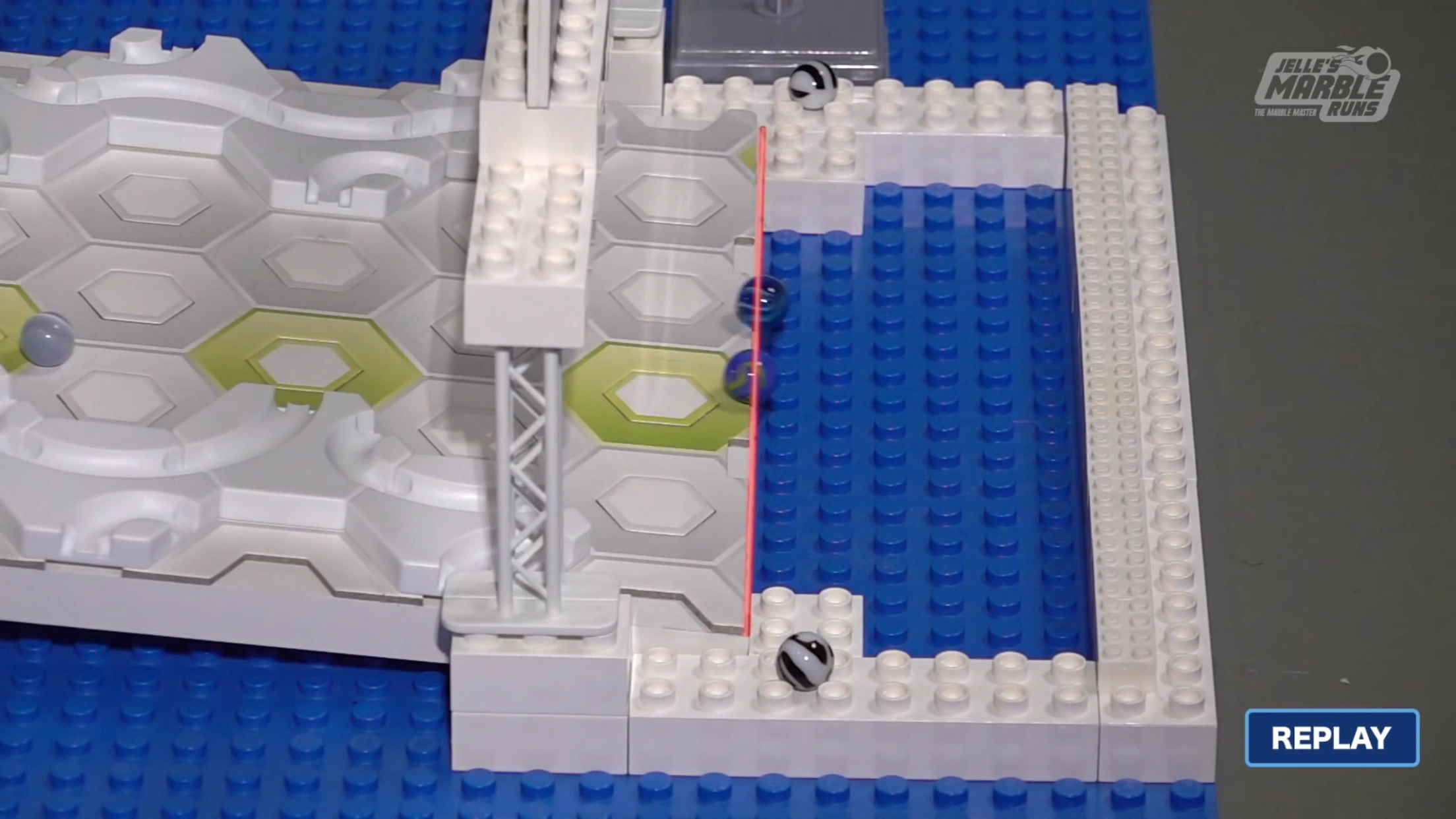 In this event, 4 marbles roll down a track covered in obstacles. The fastest two down the track from each heat move on to the next round.