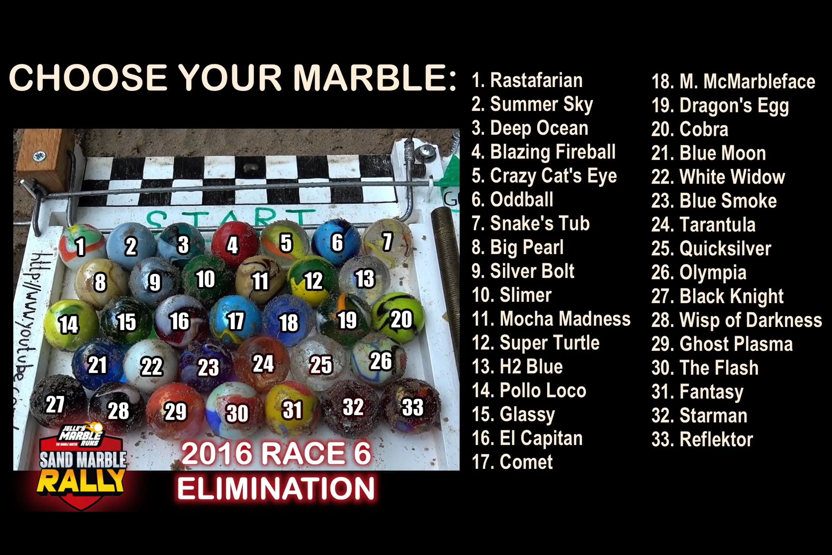 The sixth race of the Sand Marble Rally 2016 was held at Klimduin Schoorl on the 22nd July 2016. 33 marbles participated in the race.