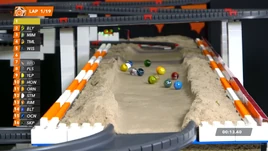 In lap 9, Red Eye passed through sector 1 smoothly and passed Bumble and Cerulean, then Red Eye also managed to overtake Wispy during the sand section, rising up into 5th at the end of lap 9. In the next lap, Tumult passed Billy at the conveyor belt exit, Red Eye bumped against the walls and fell to 8th, Cerulean also dropped to 10th. During the sand section Cerulean even dropped into 14th place despite being in 1st in lap 1. In the penultimate turn, Tumult bumped against the wall and lost tons of speed as Billy and Snowstorm both passed Tumult.